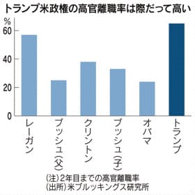 ちなみにトランプ政権でやめた人には国務長官・内務長官・司法長官・環境保護局長官などの高官が含まれる。また補佐官の解任や辞任なども目立つ。